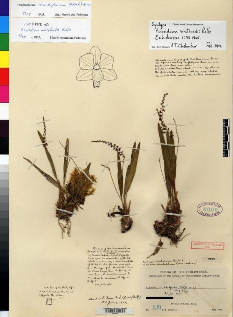 Acoridium rhombophorum is a warm growing epiphytic orchid.