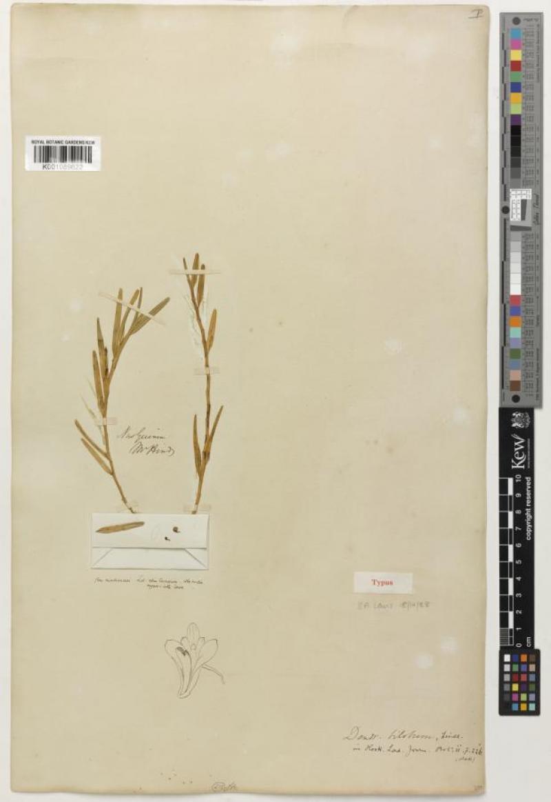 Dendrobium carnosum is a miniature warm to hot growing epiphytic orchid belonging to the sub family Epidendroideae.