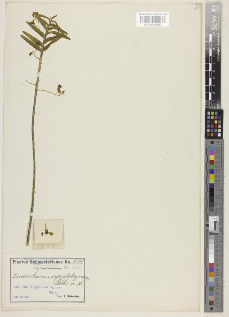 Dendrobium cymatoleguum is a sympodial orchid belonging to the sub family Epidendroideae native to New Caledonia.