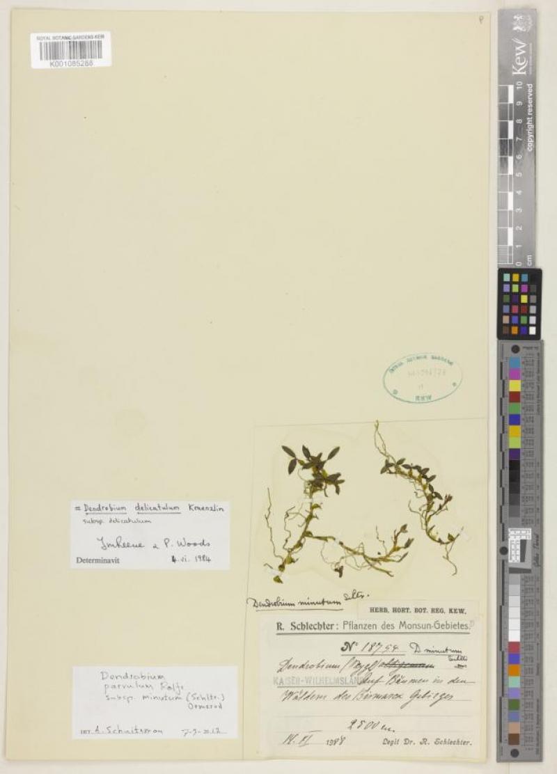 Dendrobium minutum is a warm to hot growing orchid belonging to the sub family Epidendroideae.