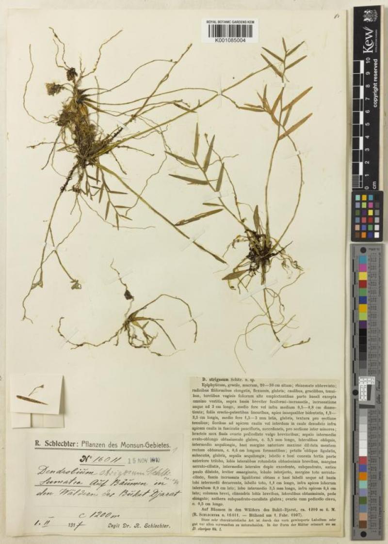 Dendrobium strigosum is a cool to warm growing orchid belonging to the sub family Epidendroideae.