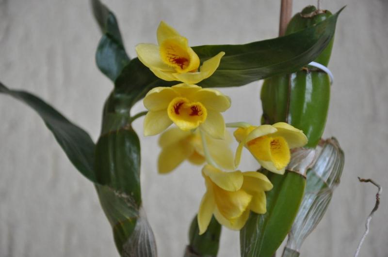 Sympodial. Grows to 20-45cm. Each new growth has numerous leaves that grow to 10-20cm long. Pseudobulbs grow to 20-45cm