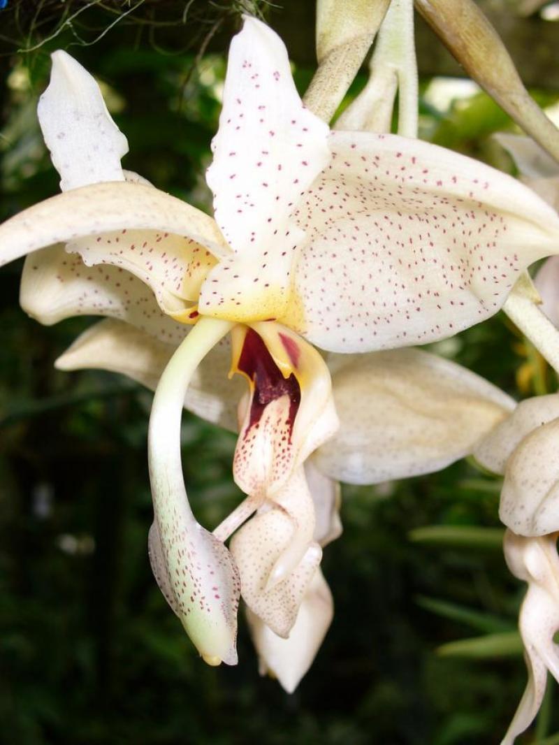 Gongora cornuta is a warm to hot growing epiphytic orchid belonging to the sub family Epidendroideae.