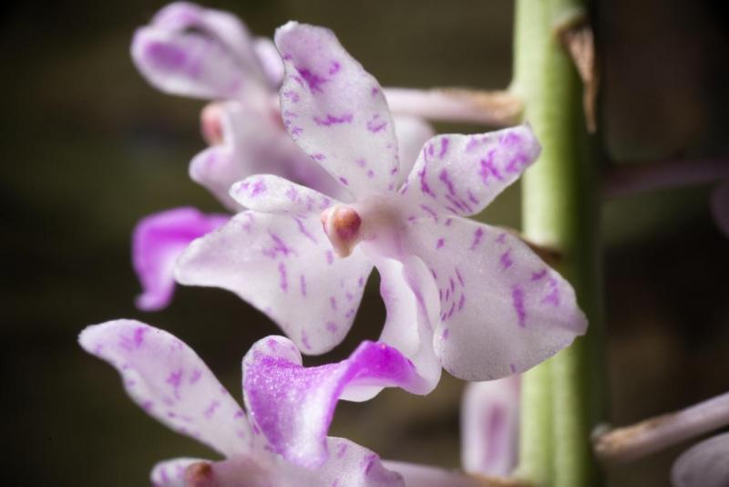 Aerides retusa is a medium sized warm to hot growing epiphytic orchid belonging to the sub family Epidendroideae.