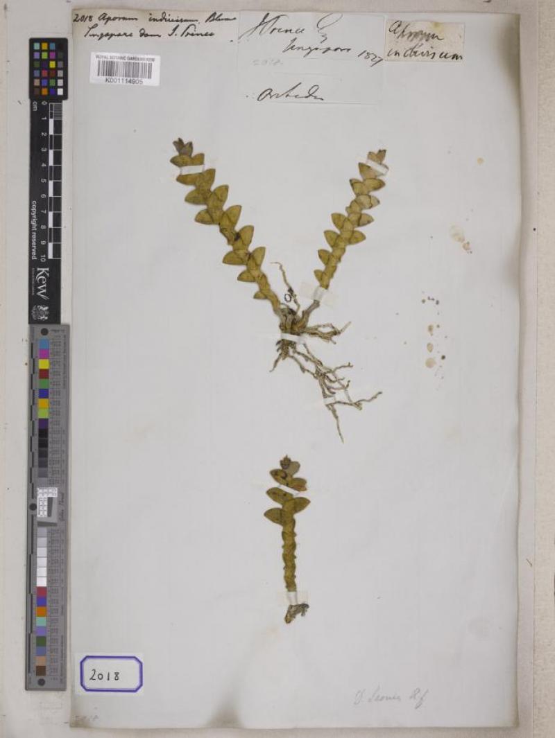 Aporum indivisum is a small to medium sized warm to hot growing epiphytic orchid.