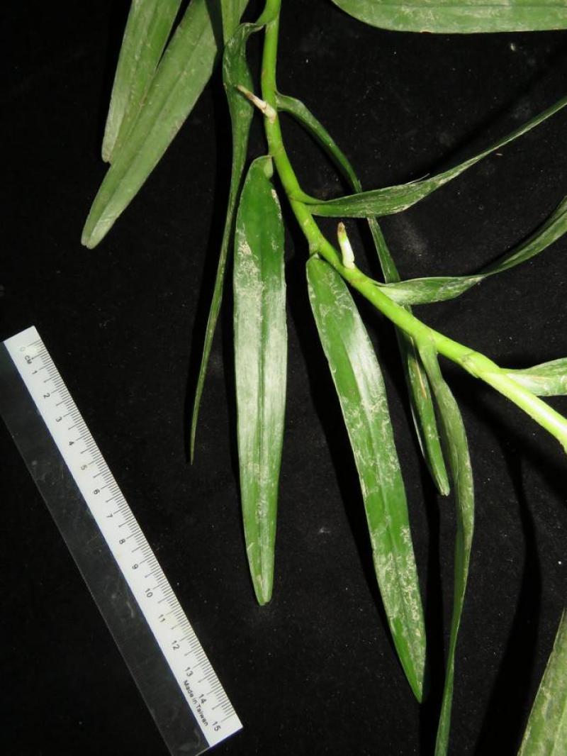 Monopodial. Each new growth has numerous leaves that grow to 2-10cm long