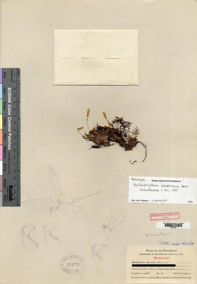 Bulbophyllum alboroseum is an orchid belonging to the sub family Epidendroideae.