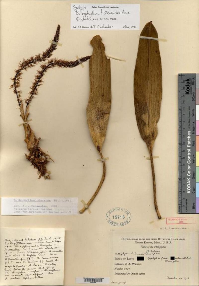 Bulbophyllum braccatum is a warm to hot growing epiphytic orchid belonging to the sub family Epidendroideae.
