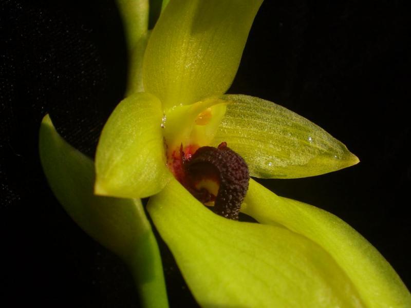 Sympodial. Grows to 45cm. Each new growth has a single elliptic leaf that grows to 5-36cm long. Pseudobulbs grow to 6cm