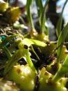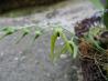 Sympodial. Grows to 2-14cm. Each new growth has a single oblong shaped leaf that grows to 1.2-11cm long. Pseudobulbs grow to 2-3cm. The plant forms clusters over time