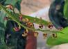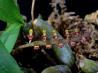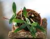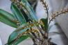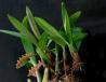 Grows to 1.2-10cm. Each new growth has numerous lance shaped oblong shaped leaves that grow to 0.6-15cm long. Pseudobulbs grow to 1-5cm