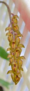 Grows to 0.2-30cm. Each new growth has a single thick oblong shaped leaf that grows to 3.5-27cm long. Pseudobulbs grow to 6cm