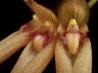Grows to 5-20cm. Each new growth has a single leathery rigid leaf that grows to 5-15cm long. Pseudobulbs grow to 5cm. The plant tends to climb or sprawl with each new growth