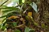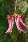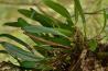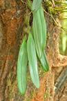Each new growth has a single leathery erect, lance shaped leaf. The plant tends to climb or sprawl with each new growth