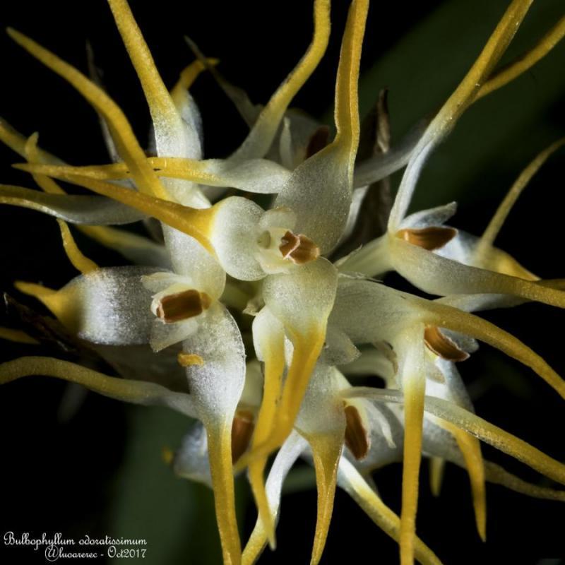 Also known as: The Fragrant Bulbophyllum or Tribrachia odoratissima Phyllorkis odoratissima Stelis caudata Stelis odoratissima Bulbophyllum odoratissimum var. racemosum Bulbophyllum trichocephalum var. wallongense Cirrhopetalum trichocephalum Bulbophyllum hyacinthiodorum Bulbophyllum trichocephalum var. racemosum Bulbophyllum trichocephalum var. capitatum Bulbophyllum trichocephalum Bulbophyllum odoratissimum var. odoratissimum Bulbophyllum congestum in the subfamily: Epidendroideae