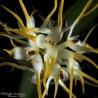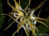 Grows to 0.4-18cm. Each new growth has a single leathery oblong shaped leaf that grows to 0.8-13.5cm long. Pseudobulbs grow to 0.3-5cm. The plant tends to climb or sprawl with each new growth