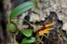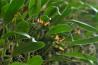 Sympodial. Grows to 10cm. Each new growth has a single oblong shaped leaf that grows to 1.3-10cm long. Pseudobulbs grow to 0.8-2.5cm. The plant tends to climb or sprawl with each new growth