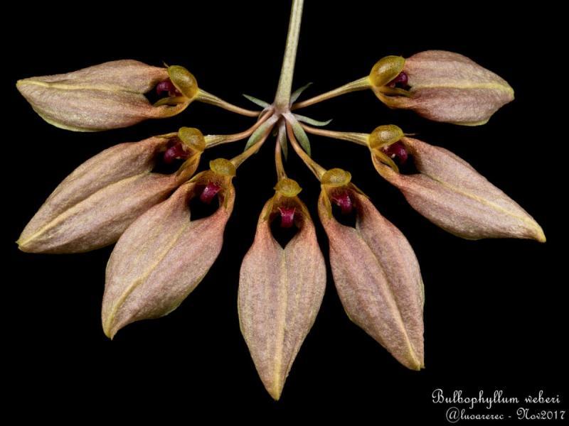 Also known as: Weber's Bulbophyllum or Cirrhopetalum baucoense Bulbophyllum baucoense in the subfamily: Epidendroideae