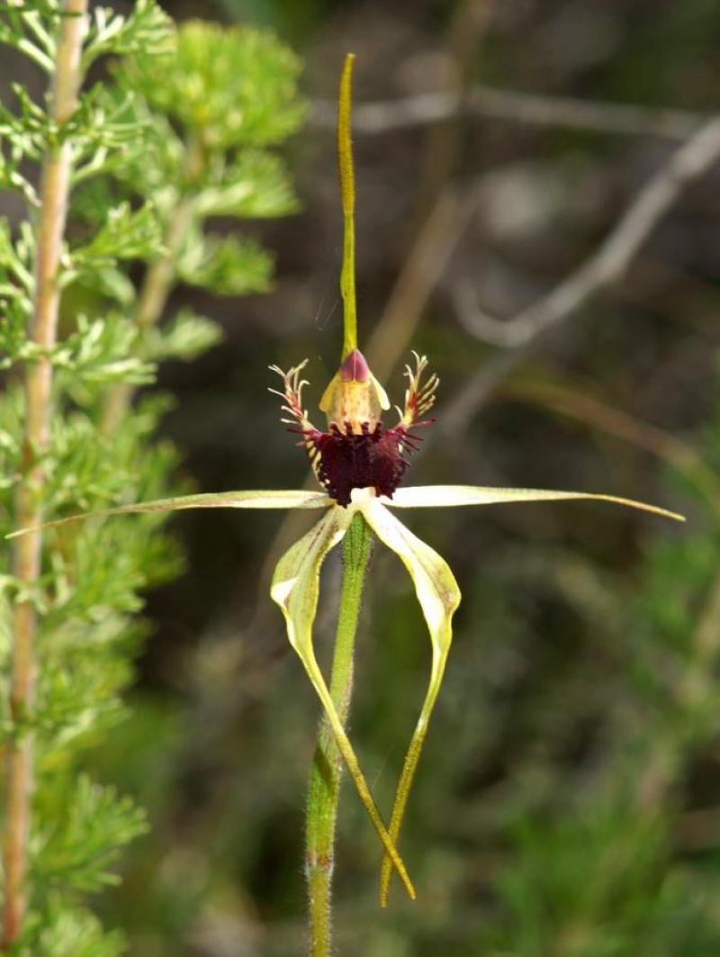 Also known as: Grand Slipper Orchid or Caladenia reniformis var. huegelii in the subfamily: Orchidoideae
