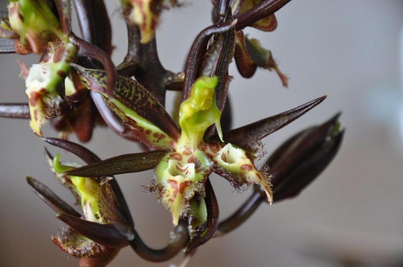 Also known as: The Bent Catasetum or Catasetum stupendum Catasetum saccatum var. incurvum in the subfamily: Epidendroideae