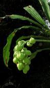 Each new growth has numerous arching lance shaped leaves that grow to 10-60cm long. Pseudobulbs grow to 3-12cm