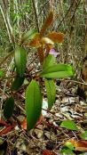 Sympodial. Grows to 25-60cm. Each new growth has numerous erect leaves that grow to 3-12cm long. Pseudobulbs grow to 25-60cm