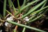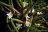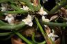 Grows to 30cm. Each new growth has numerous terete shaped leaves that grow to 0.4-25cm long. Pseudobulbs grow to 30cm. The plant forms pendant or arching growths