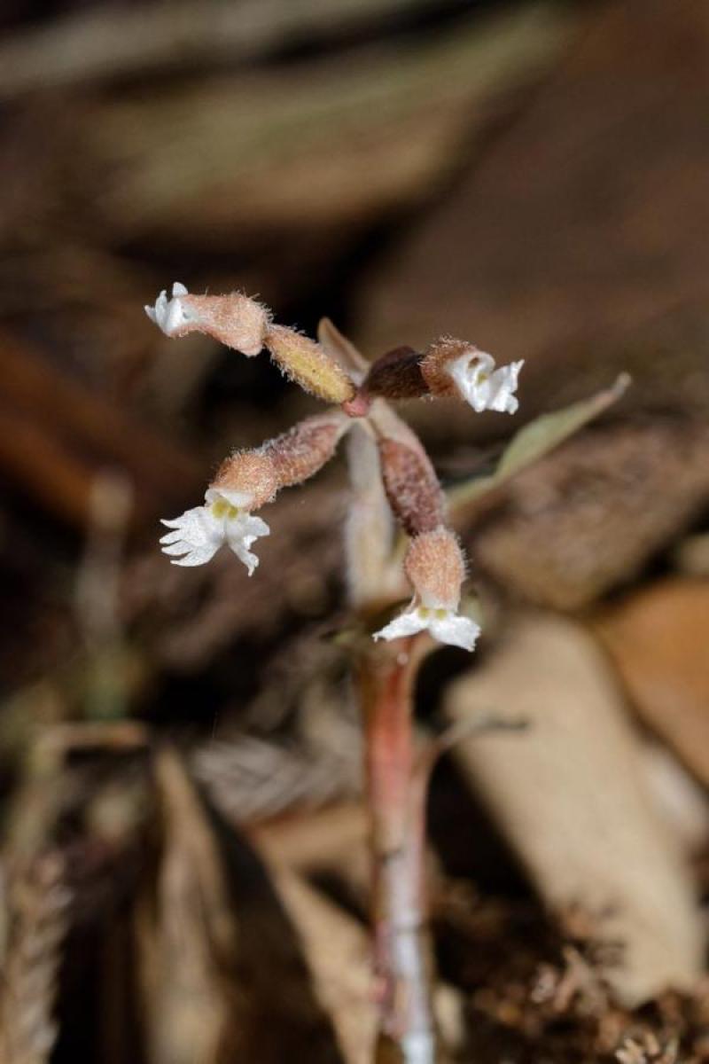 The Twisted Purple Cheirostylis is an orchid belonging to the sub family Spiranthoideae. The name refers to the stem color and shape.