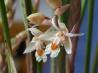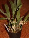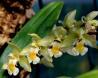 Grows to 36cm. Each new growth has a single erect arching, lance shaped leaf that grows to 2.5-30cm long. Pseudobulbs grow to 1.5-6cm