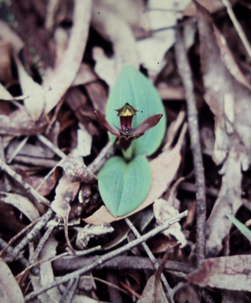 Also known as: Common Bird Orchid or Chiloglottis platychila Large Bird Orchid (Australia) in the subfamily: Orchidoideae