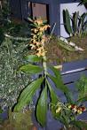 Grows to 40cm. Each new growth has numerous leaves that grow to 8-25cm long. Pseudobulbs grow to 2.5-40cm. The plant forms pendant or arching growths