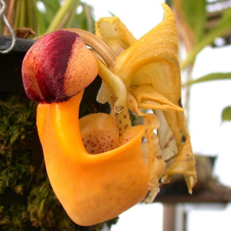 The Coryanthes with a line of Small Warts is a sympodial warm to hot growing epiphytic orchid belonging to the sub family Epidendroideae native to Peru.