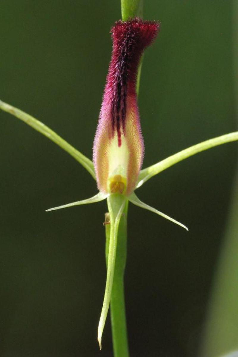 Also known as: Hunter's Cryptostylis or In Australia - Furred Tongue Orchid The Leafless Tongue Orchid in the subfamily: Orchidoideae