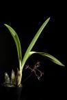 Grows to 27-48cm. Each new growth has numerous leathery thick, erect, rigid, elliptic leaves that grow to 15-46cm long. Pseudobulbs grow to 2.5-12cm