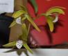 Sympodial. Grows to 15cm. Each new growth has numerous leathery erect, oblong shaped leaves that grow to 3.3-17cm long. Pseudobulbs grow to 2.5-3.7cm