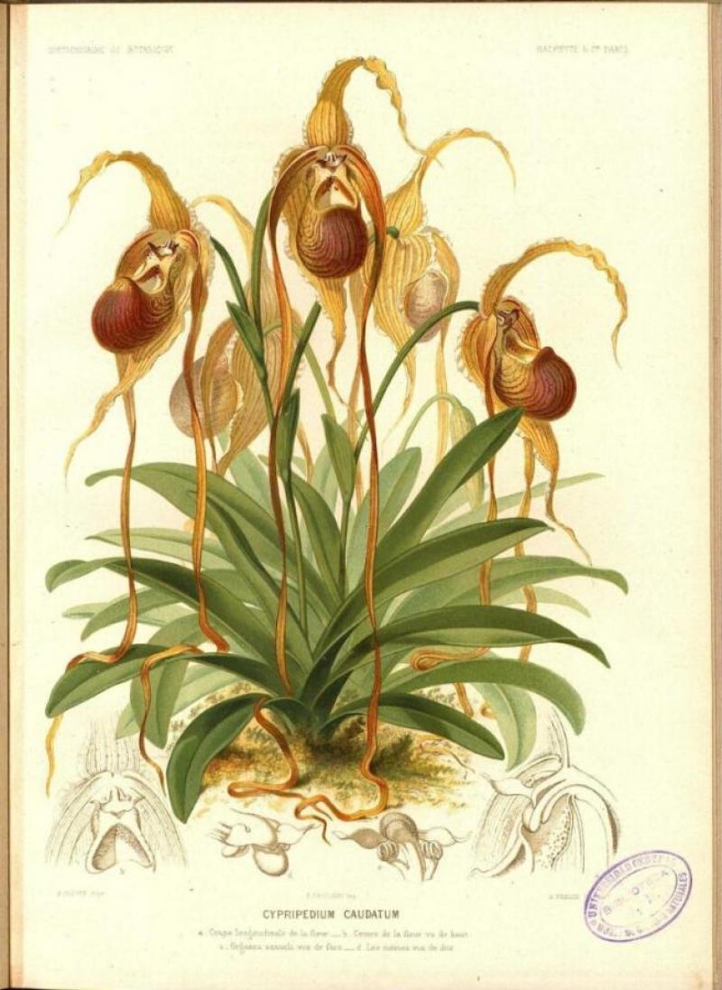Cypripedium caudatum is a large cool to warm growing epiphytic, lithophytic or terrestrial orchid belonging to the sub family Cypripedioideae.
