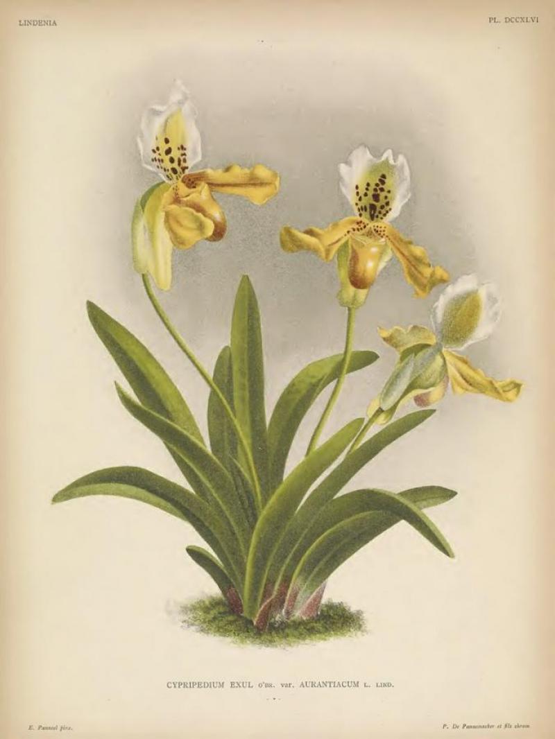 Cypripedium exul is a small to medium sized hot growing terrestrial orchid belonging to the sub family Cypripedioideae.
