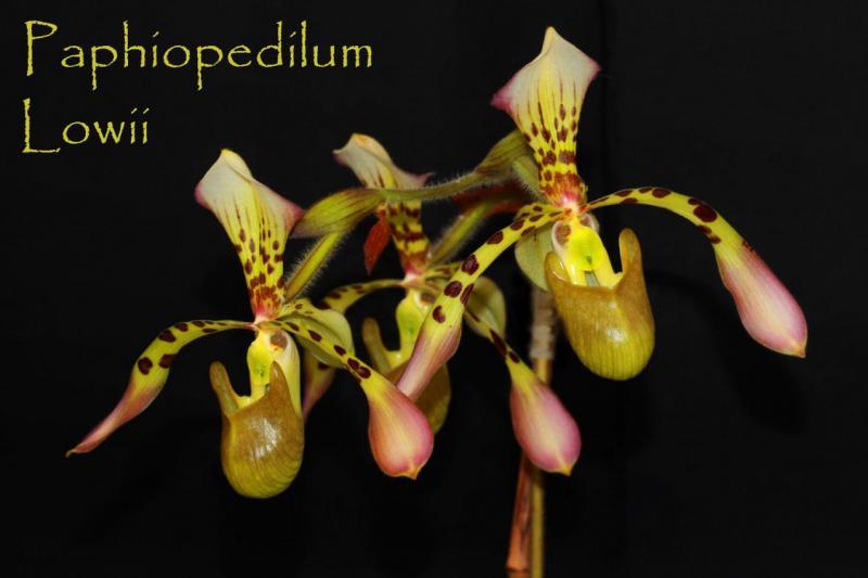 Cypripedium lowii is a medium sized warm growing epiphytic or lithophytic orchid belonging to the sub family Cypripedioideae.