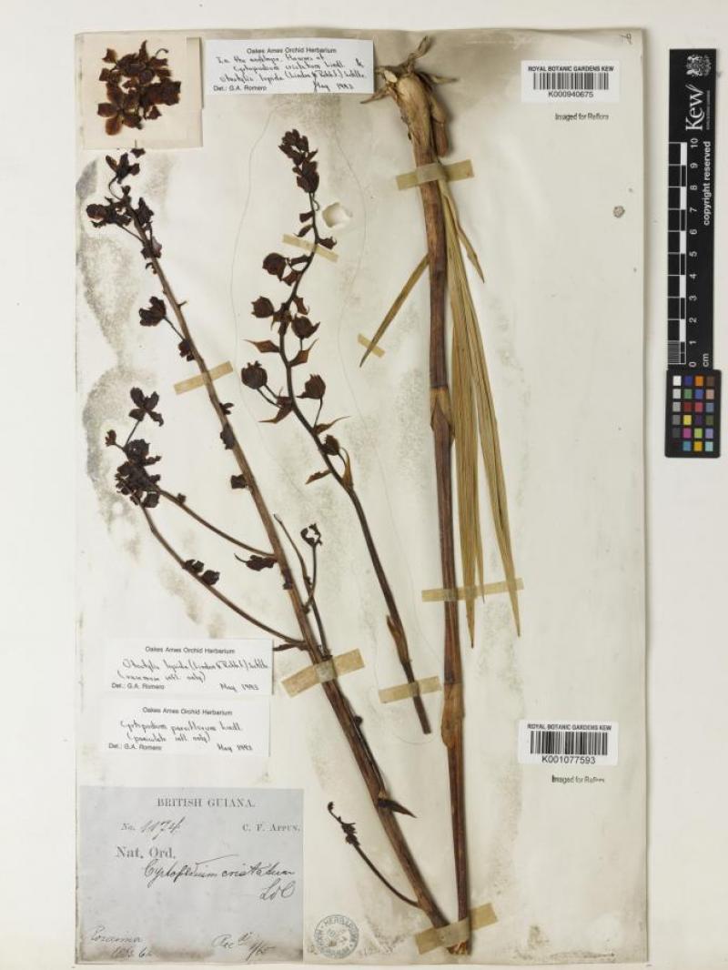 The Calus Cyrtopodium is a hot growing epiphytic orchid belonging to the sub family Epidendroideae.