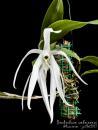Sympodial. Grows to 35cm. Each new growth has numerous leathery lance shaped, oblong shaped leaves that grow to 15cm long. Pseudobulbs grow to 20cm