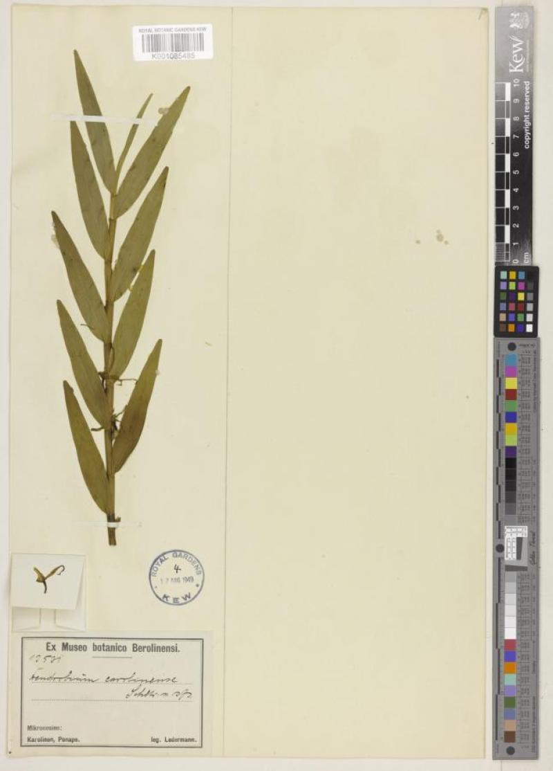 Dendrobium carolinense is a sympodial orchid belonging to the sub family Epidendroideae.