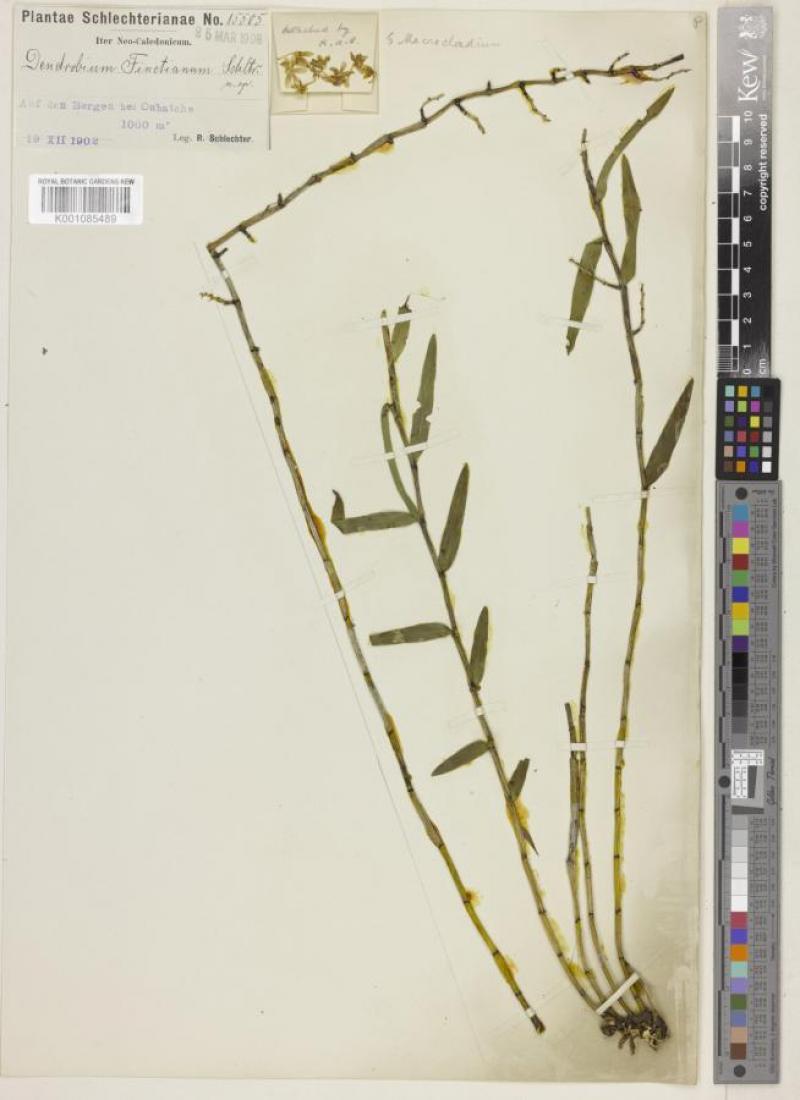Finet's Dendrobium is a sympodial cool to hot growing orchid belonging to the sub family Epidendroideae native to New Caledonia. It is named after the French Botanist later in the 19th century.