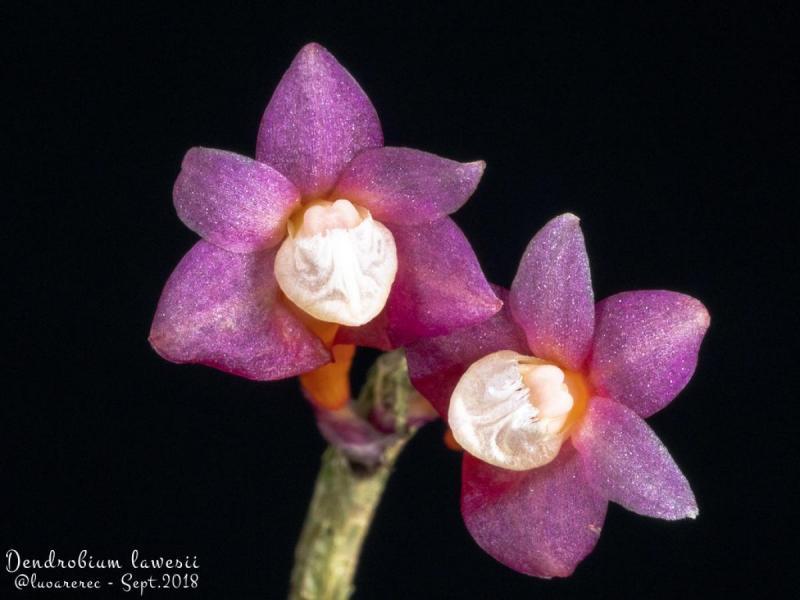 Also known as: Lawes' Dendrobium or Dendrobium warburgianum Dendrobium lawesii h.v. persrooi Dendrobium lawesii h.v. bicolor Dendrobium pseudomohlianum Dendrobium lawesii h.v. ligrooi Dendrobium lawesii h.v. bicolour Chromatotriccum delphinioides Dendrobium delphinioides Dendrobium lawesii var. salmonicolor in the subfamily: Epidendroideae