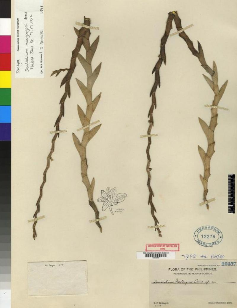 Dendrobium macgregorii is a medium sized sympodial warm to hot growing epiphytic orchid belonging to the sub family Epidendroideae.