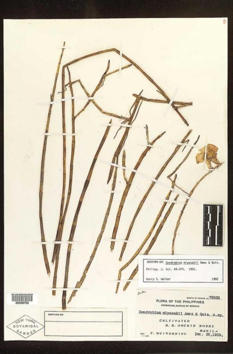 Miyasaki's Dendrobium is a sympodial warm growing orchid belonging to the sub family Epidendroideae native to Philippines. It is named after the Philippine Orchid Enthusiast in the 1900's.