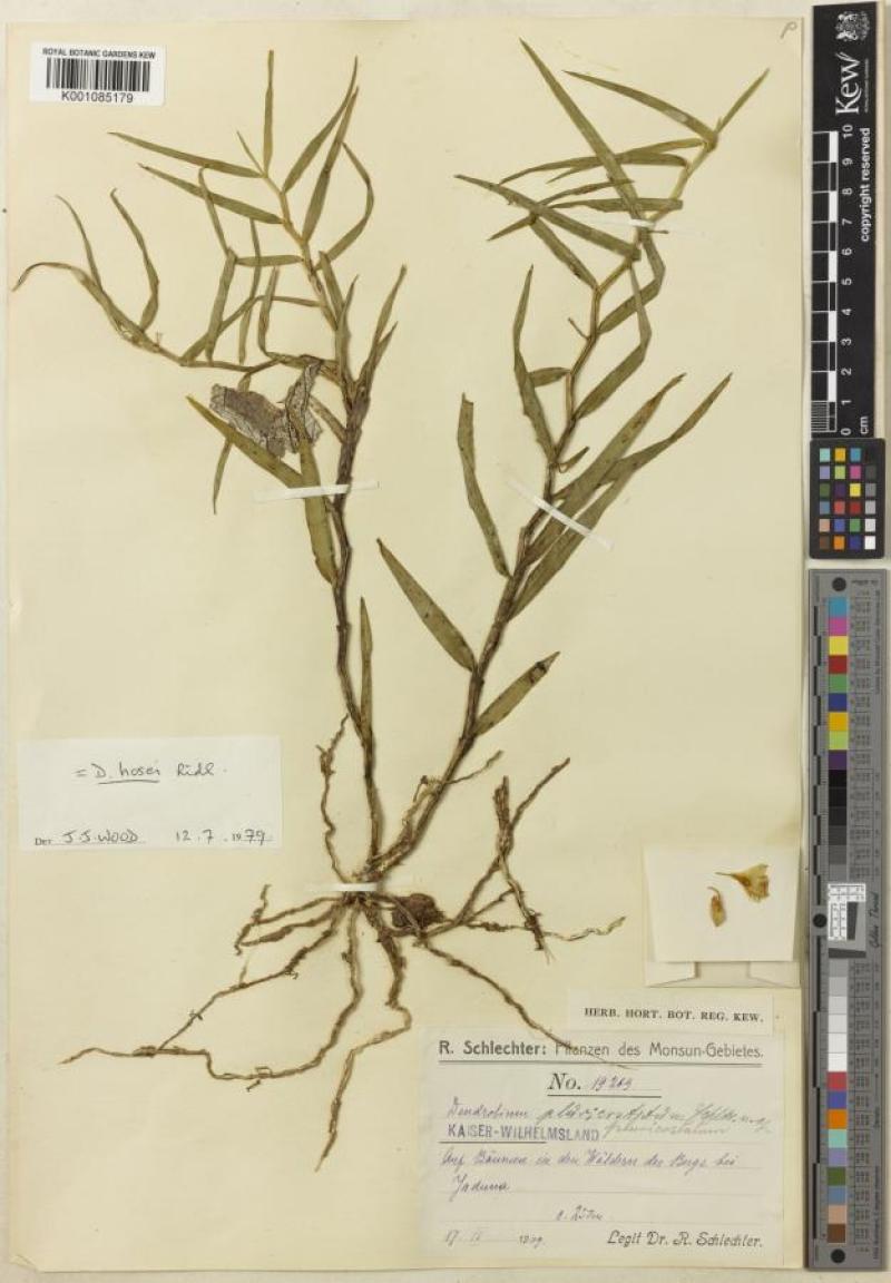 Dendrobium pluricostatum is a warm to hot growing epiphytic orchid belonging to the sub family Epidendroideae.