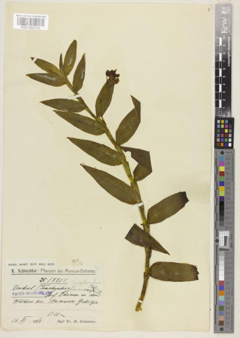 Also known as: Trachyrhizum villosipes Dendrobium prostheciglossum h.v. obtusilobum Dendrobium villosipes Dendrobium prostheciglossum var. obtusum Dendrobium latifrons Dendrobium kryptocheilum in the subfamily: Epidendroideae