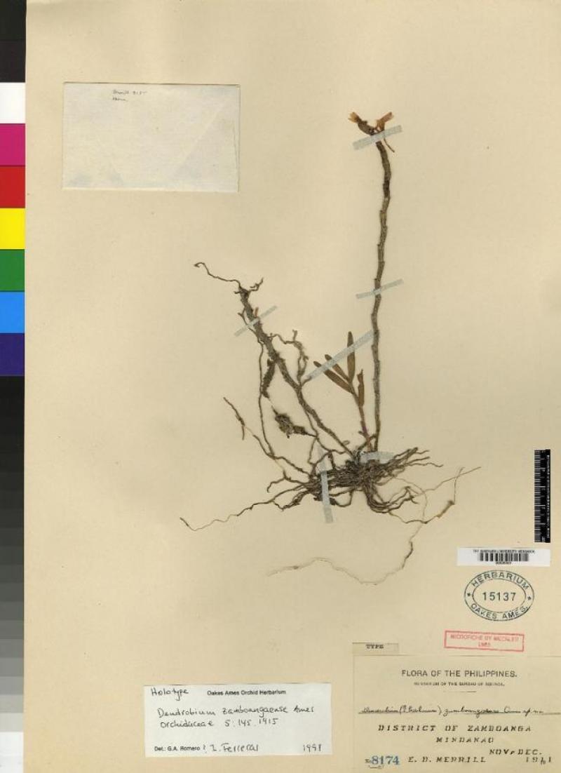 Dendrobium zamboangense is a sympodial orchid belonging to the sub family Epidendroideae.