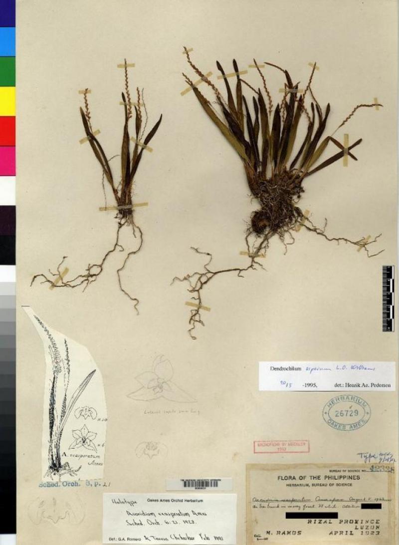 Also known as: The Rough Dendrochilum or Acoridium exasperatum in the subfamily: Epidendroideae
