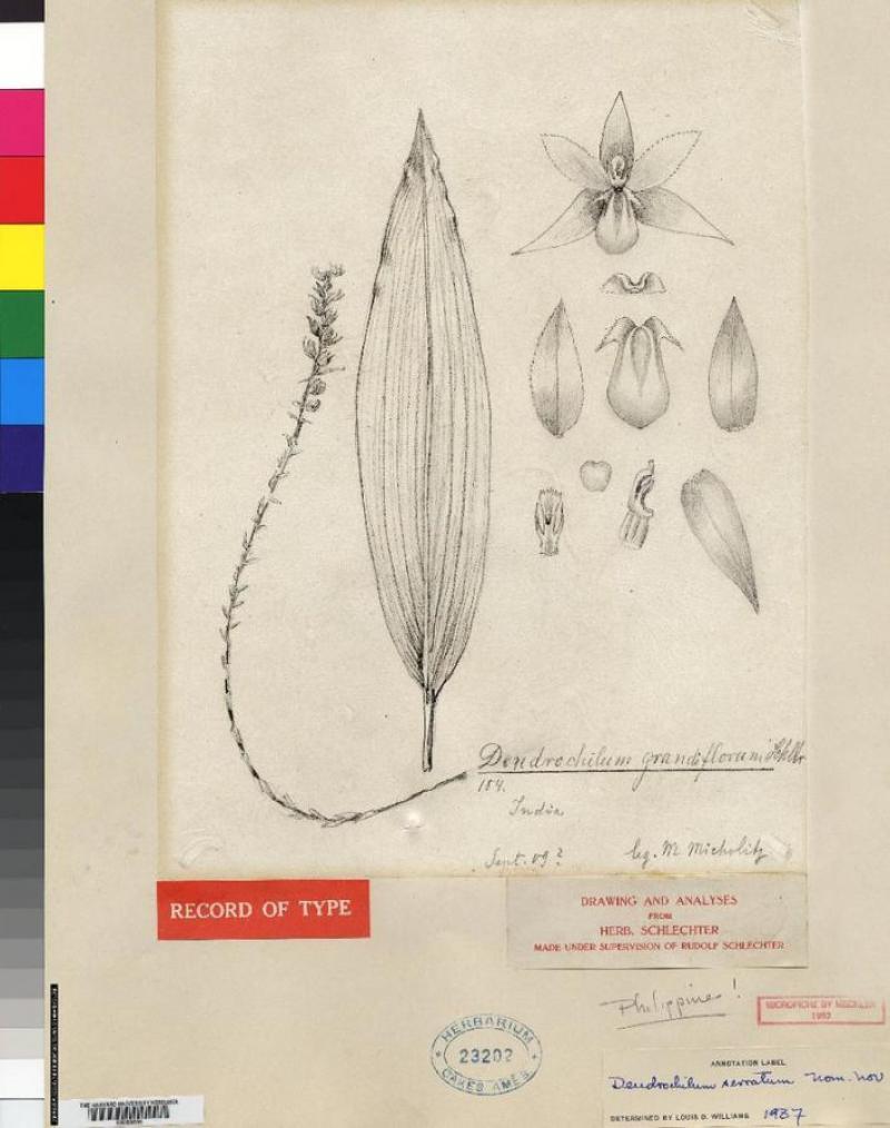 Dendrochilum serratum is a medium sized cool to hot growing epiphytic orchid belonging to the sub family Epidendroideae.